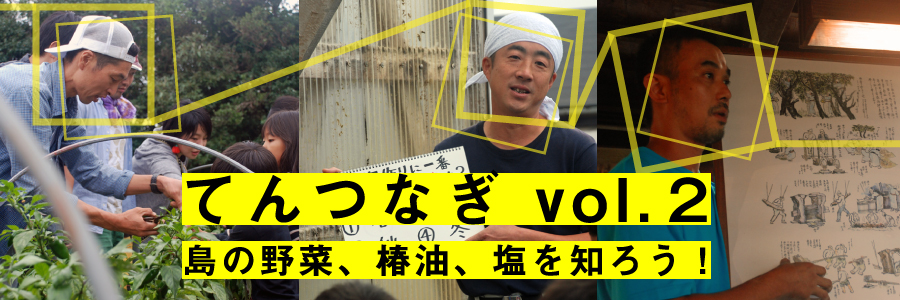 てんつなぎvol.2では、伊豆大島の特産である椿油、塩、そして農産物。実際に生産の現場を見学し、生産者さんから生の声を聞き、問題や起こっていることなど、生産現場の現状を知るイベントを開催しました。