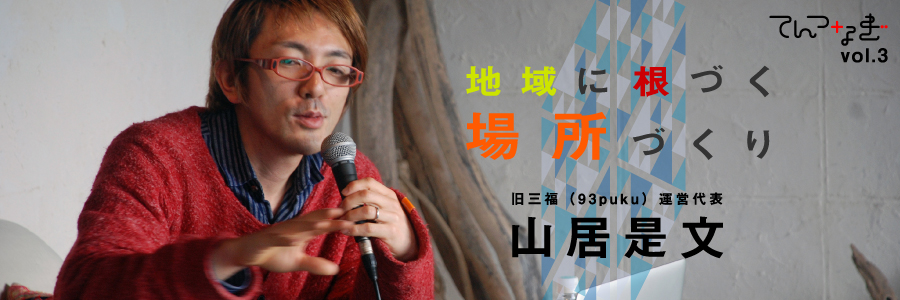 てんつなぎvol.3では、小田原市内の商店街にあった元中華料理店の空き店舗をセルフリノベーションしたシェアスペース『旧三福(93puku)』を立ち上げた山居さんお招きして地域に根づく場所づくりのあり方を学びました。