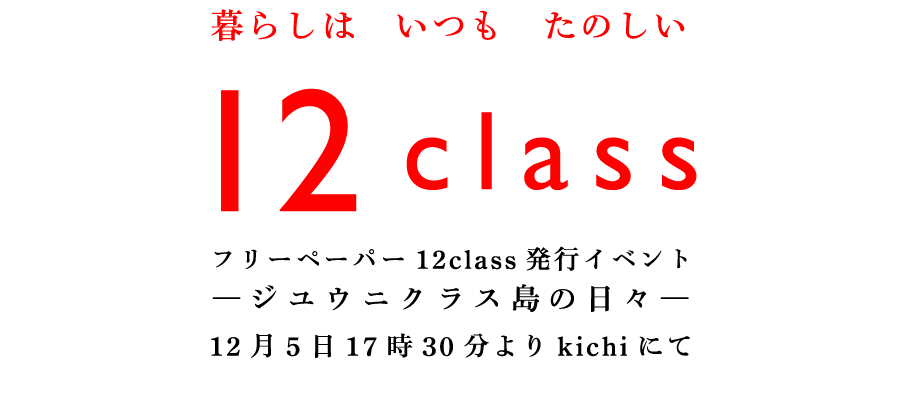 ※件名に「12class発行イベント参加希望」とし、氏名と人数、ご連絡先をご明記ください。