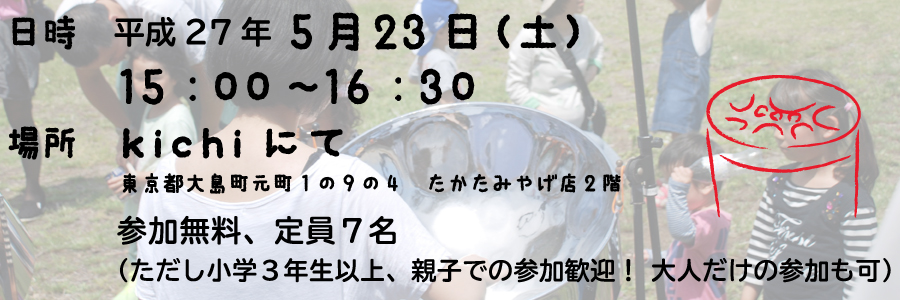 〔ミハライロ〕キッズプログラム第一弾として、そんなスティールパンを弾いてみるワークショップ『steelpanにふれよう steelpanで遊ぼう』を開催します。
