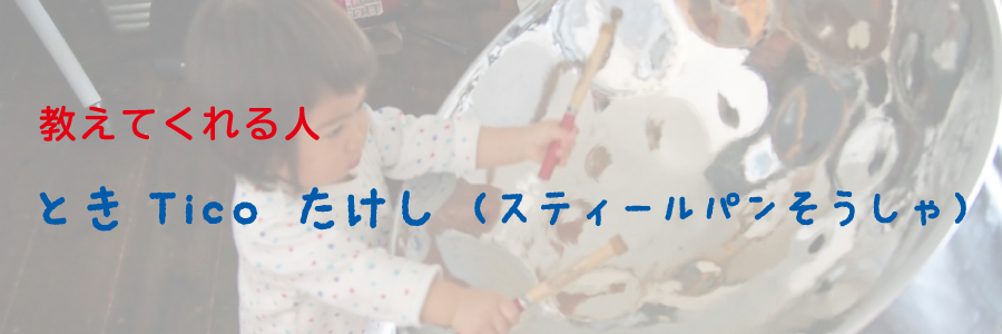 スティールパンを教えてくれる人はスティールパン奏者の“とき Tico たけし”さんです。