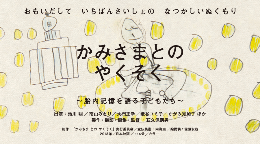 胎内記憶と子育ての実践、インナーチャイルドをテーマにしたドキュメンタリー映画です。胎内記憶とはお母さんのお腹の中にいたときの記憶や、その前の記憶のこと。インナーチャイルドとは、あなたの内なる子ども。心の深奥部に潜み、幼児期の体験によって傷つけられたり抑圧されたりしている、真の自己のことです。研究者、教育者、たいわ士(胎児や赤ちゃんの通訳)が、子ども達と真剣に向き合う姿を先入観なく、ありのままに観てほしい。そして観客ひとりひとりが身近な子どもたちとのつながり方を考える時間を共有してほしい、そんな思いで作られた映画です。(映画「かみさまとのやくそく」公式HPより)
