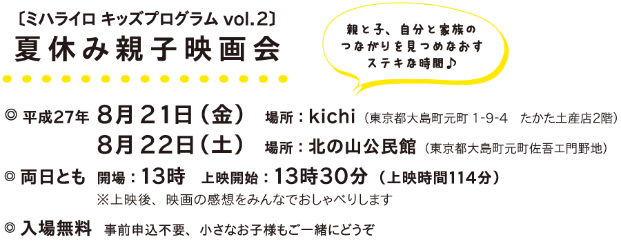 親と子、自分と家族のつながりを見つめなおすステキな時間を一緒に過ごしましょう!